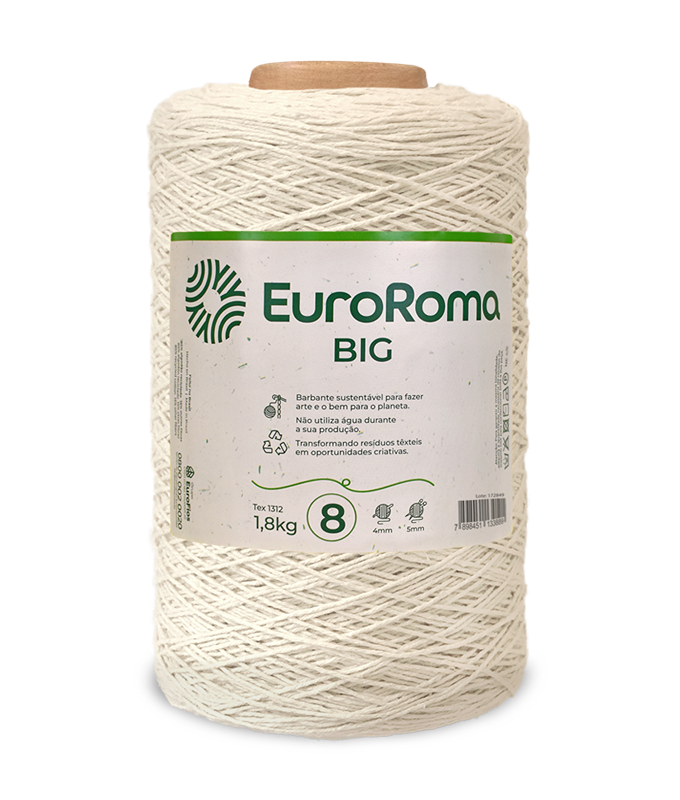O gigante da estrutura natural. O Barbante EuroRoma Big Cru Nº 8 (1,8kg) foi feito para desafios pesados. Combinando a robustez de 8 fios com o visual rústico do algodão não tingido e o volume do cone de 1,8kg, ele é a matéria-prima definitiva para decorações encorpadas e em grande escala.