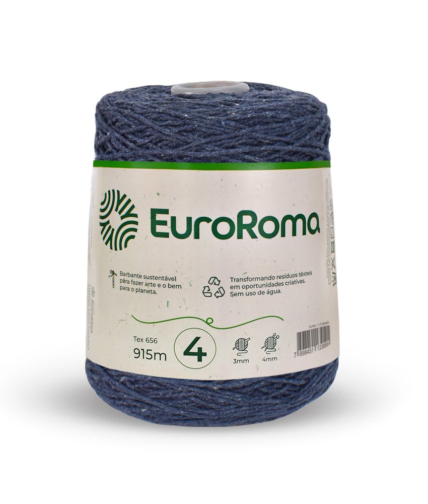 Transforme suas ideias em peças impecáveis com o Barbante EuroRoma Nº 4. Produzido pela EuroFios através de um processo sustentável que dispensa o uso de água em sua tintura, este barbante é a escolha preferida de artesãos que buscam qualidade, maciez e responsabilidade ambiental.